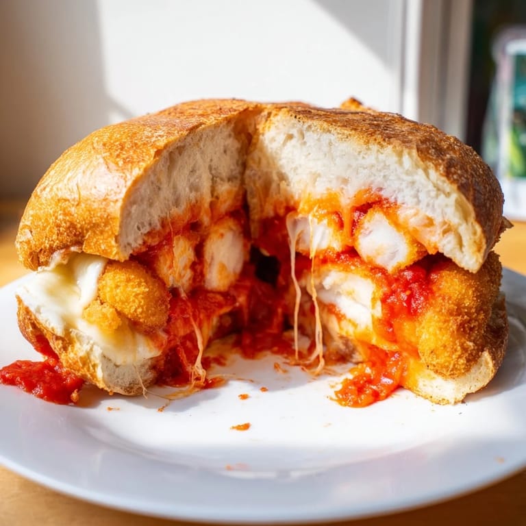 Save to Pinterest I stumbled onto this sandwich by accident one rainy Tuesday when my roommate challenged me to make something more exciting than plain grilled cheese. I had frozen mozzarella sticks left over from game night, a jar of marinara that needed using, and suddenly it hit me: why not combine everything into one gloriously messy, cheesy creation? The moment that first bite released a cascade of melted cheese and tangy sauce, I knew I'd discovered something worth repeating.