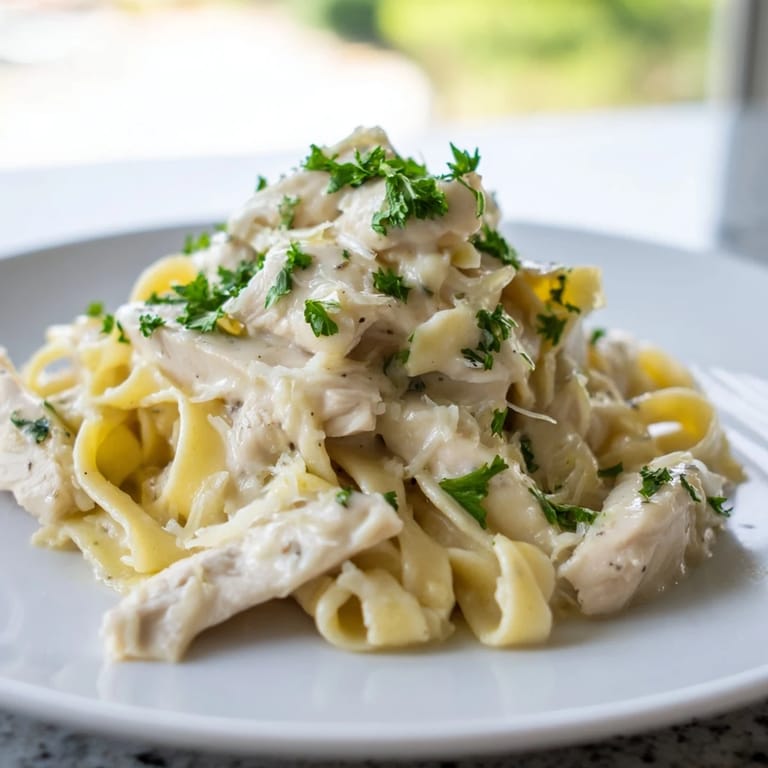 Save to Pinterest There's something about the sizzle of chicken hitting hot oil that makes a weeknight feel less like an obligation and more like an occasion. My neighbor stopped by one evening while I was testing this skillet Alfredo, and the aroma alone had her lingering in the kitchen, asking questions before I'd even finished cooking. One pot, thirty-five minutes, and suddenly dinner transforms into something that tastes like it came from a restaurant tucked away on some quiet Roman street. It's become my go-to when I want comfort food that doesn't demand hours of my attention.
