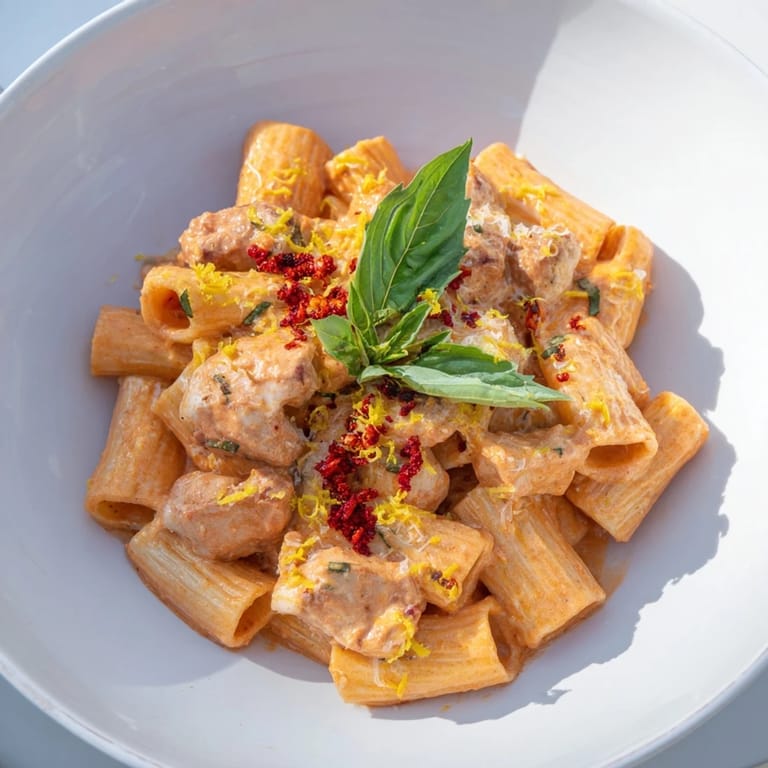 Save to Pinterest I first tried making this on a rainy Tuesday when I had leftover vodka from a failed cocktail experiment and a craving for something bold. The combination of creamy tomato sauce and sharp chili heat reminded me of the viral Hadid pasta, but adding chicken turned it into something more filling and satisfying. The first bite had that perfect balance of richness and spice that made me forget about the weather outside. I ate standing over the stove, twirling pasta straight from the pan, and texted my roommate a slightly dramatic but this is incredible. Now its my go-to whenever I want comfort with a little edge.