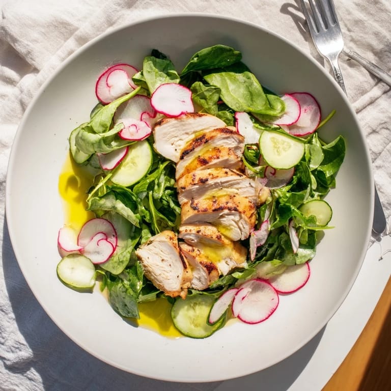 I made this for my book club last April and three people asked for the recipe before we even got to dessert. There is something so satisfying about watching people pause and take that first bright bite. The combination of warm chicken and cool crisp greens just feels like spring on a plate.